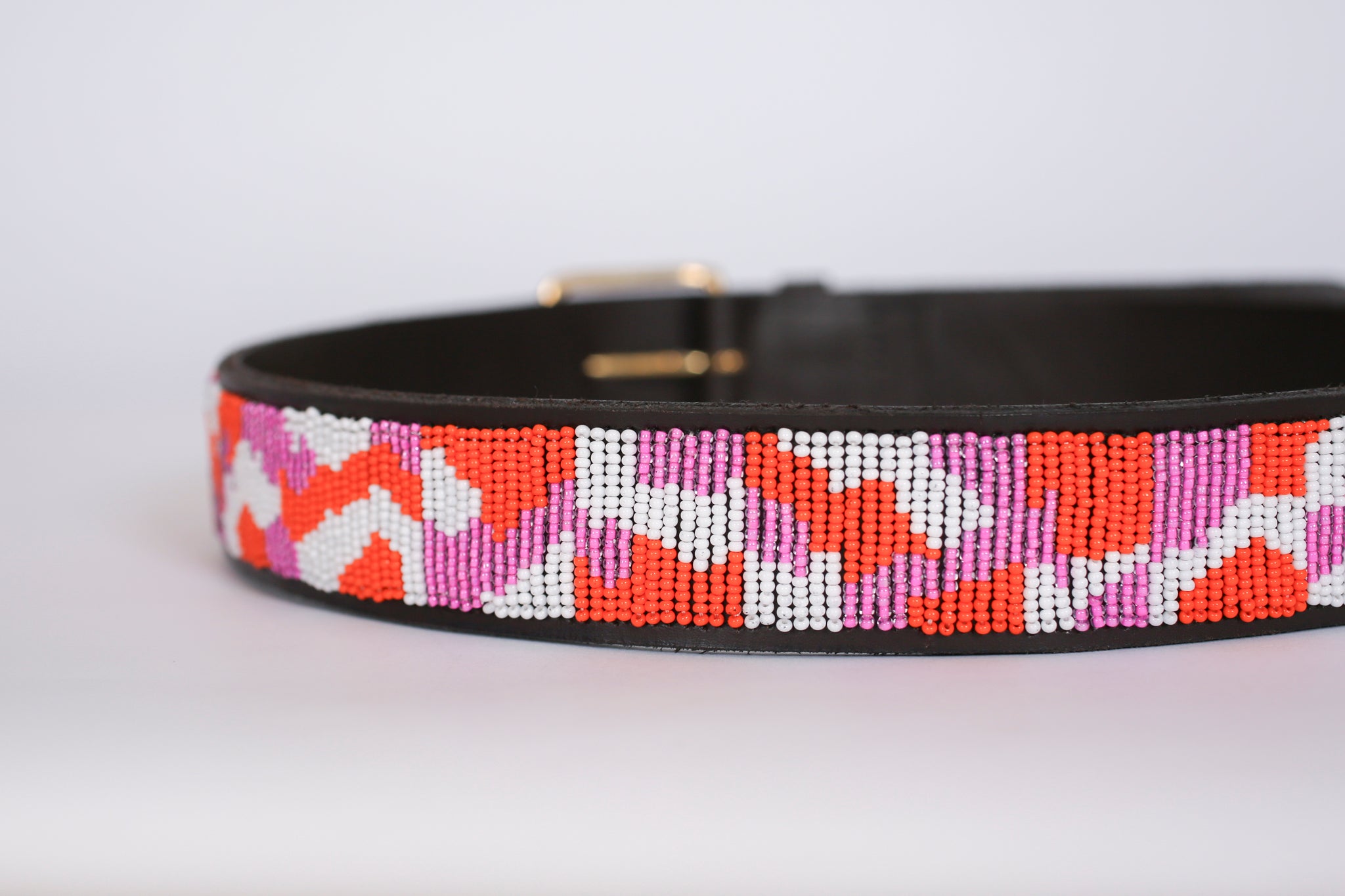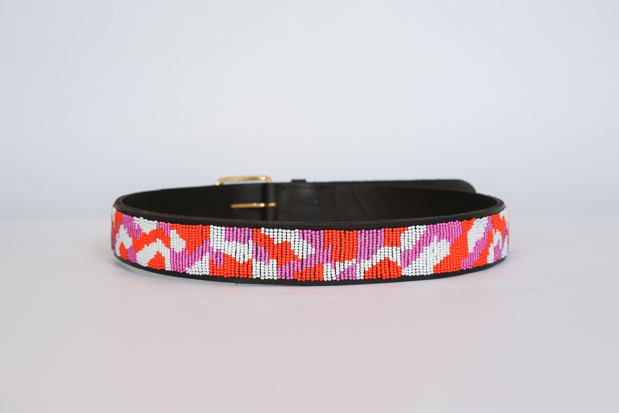 Inspired by the beautiful landscape of thousands of flamingos on Lake Nakuru, this pink and orange belt captures the vibrant energy of the natural wonder.