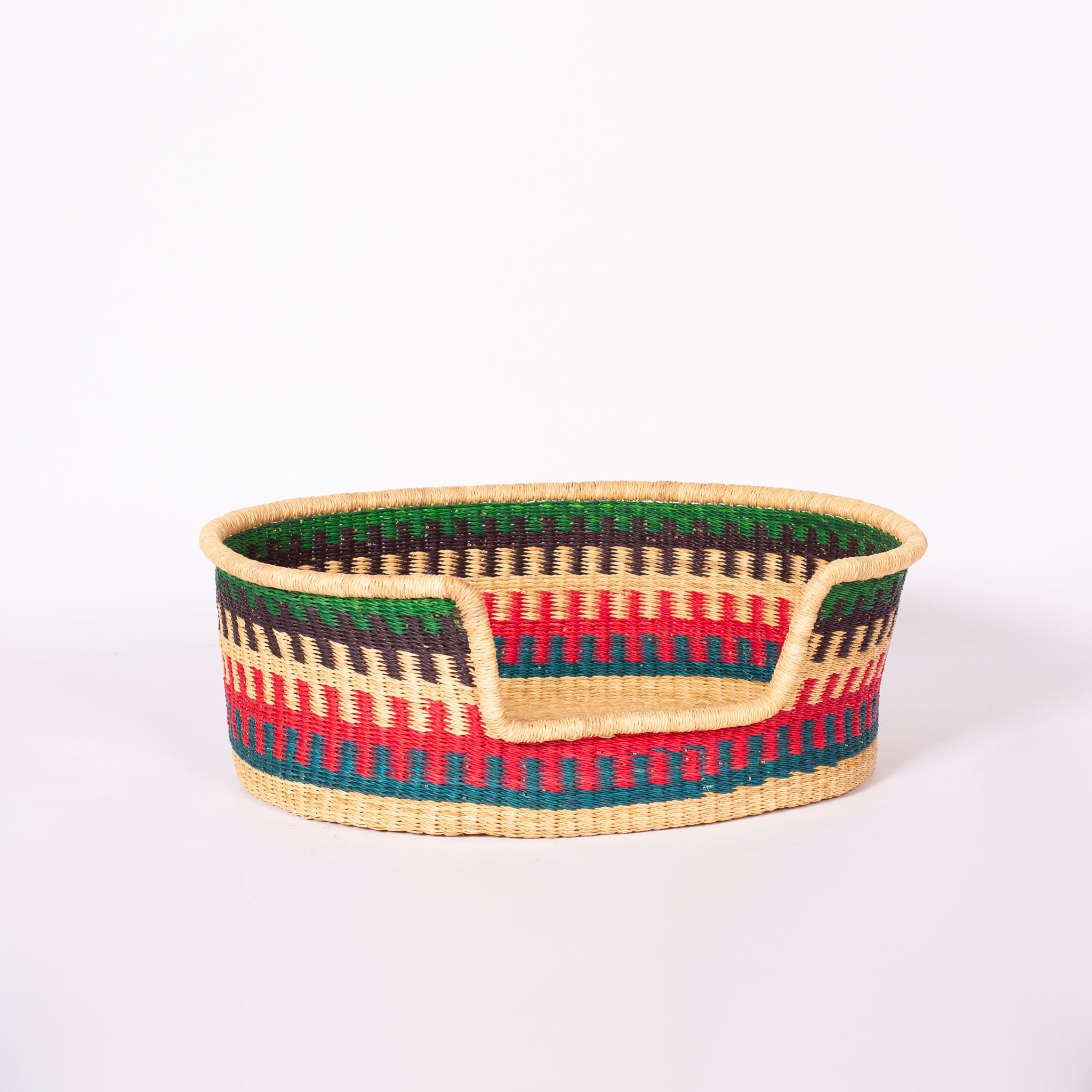 Every dog is an individual, as are our dog baskets, whatever your dog’s shape or size we can offer a basket to suit. Each one of our dog baskets is hand woven in stylish, vibrant patterns and colours. Like nothing else on the market a Wovenology dog basket will not only provide a place of refuge for your Fido it will brighten any room in which it is placed. Wovenology dog baskets come in three sizes, small medium and large.