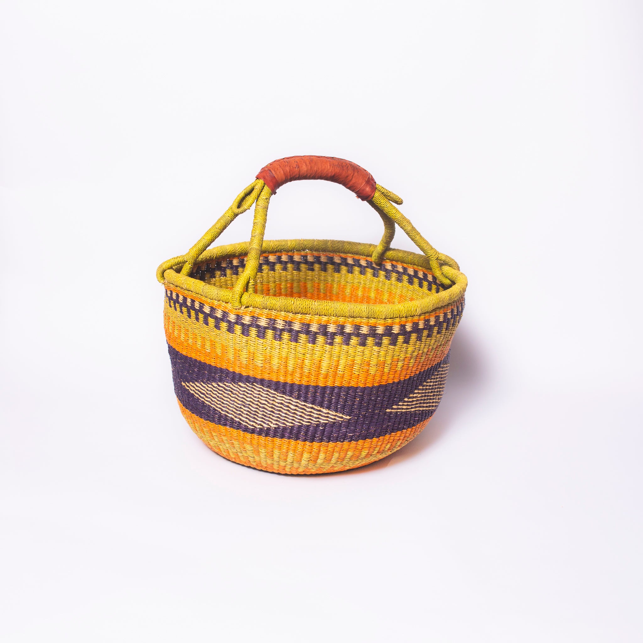 Who needs a bag for life when you can have a basket for life that has been hand woven using a unique design of vibrant patterns and colours. The traditional round Bolga baskets with a single leather handle are named after the town in Northern Ghana in which they like our other baskets are made. They come in a couple of sizes and can either be used as a shopping basket whilst out and about or as a storage vessel in the home for items such as kindling, magazines or fruit.